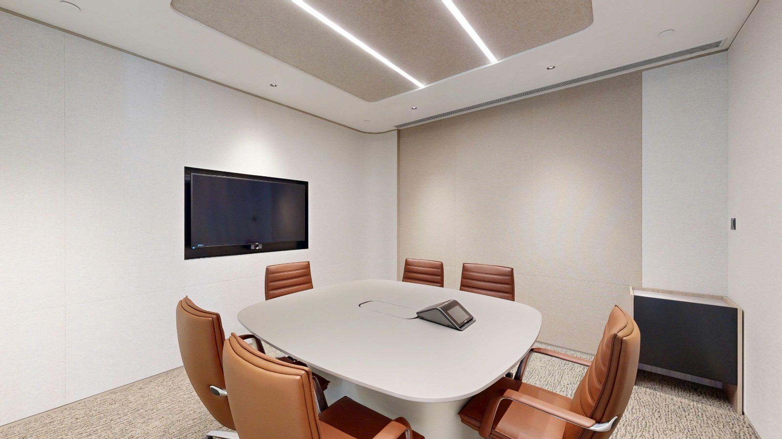 The fit-out features a variety of functional zones, from state-of-the-art boardrooms and private meeting rooms fitted with high-performance acoustic panels, to informal client lounges and collaborative breakout areas. The execution of refined details, such as the intricate ceiling coves with integrated lighting, premium herringbone flooring, and seamless wall finishes, demonstrates our commitment to precision and quality.